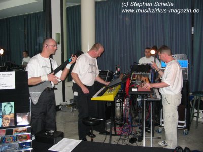 Mario und Detlef an ihren Geräten herum um ihnen die irrsten Rhythmen und