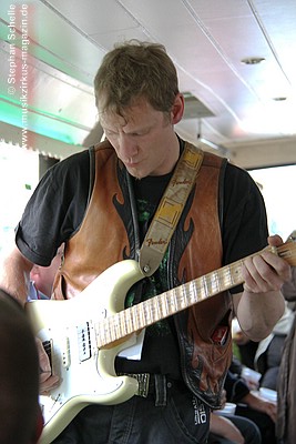 Zwar war das Wetter nicht ganz so berauschend wie vor einem Jahr, aber Aphodyl schafften es mit ihrer intensiven Musik, deren Stil sehr an die deutsche Krautrockära der Marke Jane erinnert und darüber hinaus auch eigenständige Elemente enthält zu überzeugen. Mit ihrer Spielfreude und ihrem Sound konnten sie so manchen Regenschauer vertreiben und den Mitreisenden ein freudiges Strahlen ins Gesicht zaubern.