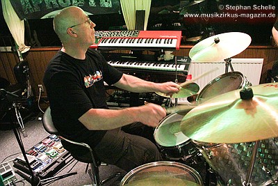 Kurz nach dem Start griffen die vier Musiker zu ihren Instrumenten und begannen mit dem ersten von drei langen Sets (die Zugaben nicht berücksichtigt). Sie legten mit einer furiosen und druckvollen Version von „Hope“ los und zeigten damit allen, in welche Richtung es heute gehen sollte. Sofort kam prächtige Stimmung auf und Aphodyl ließen nicht locker und setzten darauf eine nicht minder eindrucksvolle und wunderbare Variante ihres Stückes „Hypnotic“.
