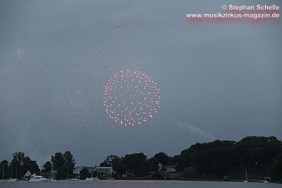 Als Zugaben spielten Aphodyl ihr Monsterwerk „Evolution“, das wohl das „Solar Music“ der Berliner Band darstellt. Das Stück zelebrierten sie wie gewohnt in einer ausufernden Variante. Passend dazu passierte das Schiff eine kleine Ortschaft, in der ein wunderbares Feuerwerk abgebrannt wurde.