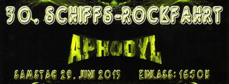 Nach 2012 enterten die Freunde der Berliner Band Aphodyl erneut die MS Heiterkeit um sich mit den Musikern zusammen wieder einmal eine Bootsfahrt der besonderen Art zu gönnen. Und es war gleichzeitig ein kleines Jubiläum für die Reederei, denn die Schiffs-Rockfahrt, unter der diese Veranstaltung läuft, ging am 29.06.2013 in die 30. Runde. Es ist schon ein außergewöhnliches Erlebnis mit dem Berliner Quartett bestehend aus Bine (Keyboards, Schlagzeug, Bass), Holly (Schlagzeug, Gesang, Gitarre), Arno (Bass) und Andre (Gitarre) sechs Stunden auf der Havel zu schippern.