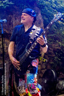 während er weiter seinen druckvollen Basspart spielte.