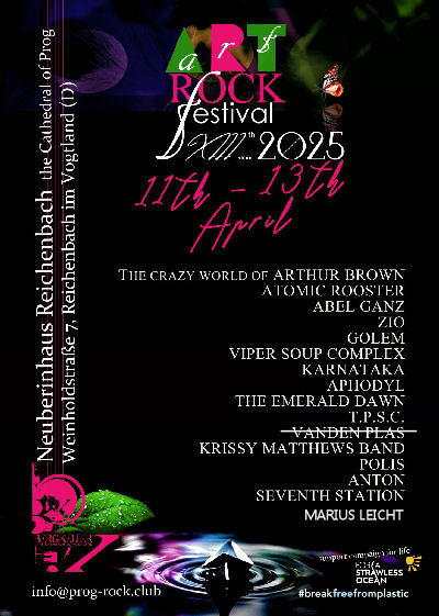 Und am Sonntag, den 13.04.2025 waren zu sehen und zu hören: Seventh Station (Slowenien) Viper Soup Complex (Malta) Philosophobia (Deutschland) ZIO (Großbritannien) Krissy Matthews Band (Großbritannien) Arthur Brown (Großbritannien)