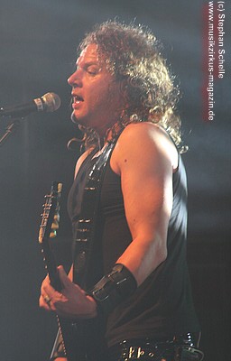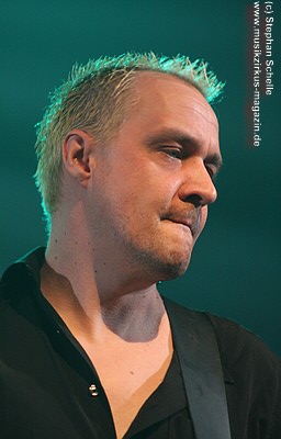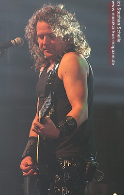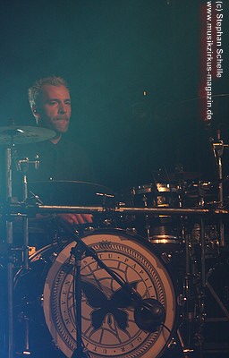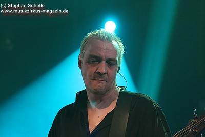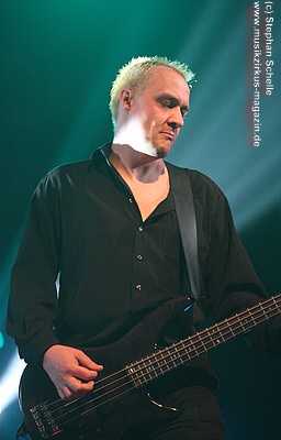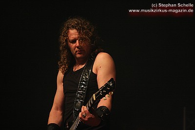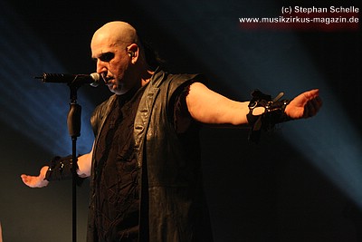 Ohne Vorband und großes Gezeter ging es pünktlich um 20.00 Uhr mit der Show los. Zu einem „Intro“, das elektronisch und rhythmisch, fast industrial klang, waren zunächst nur blaue, pulsierende Scheinwerfer zu sehen, die sich ihren Weg durch die Halle bahnten. Schon zu diesem Zeitpunkt war eine hohe Spannung im Saal zu spüren. Dann kamen die vier Bandmitglieder langsam auf die Bühne und zelebrierten mit „Kyrie“ eine Art Messe. Alexander wirkte dabei vor dem Schlagzeug kniend wie ein Hohepriester. Das war der Start zu einem mehr als zweistündigen druckvollen und mitreißenden Konzert.
