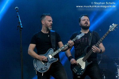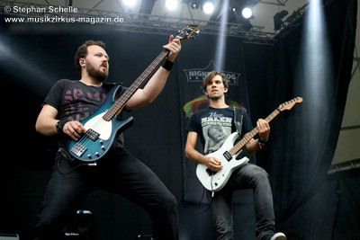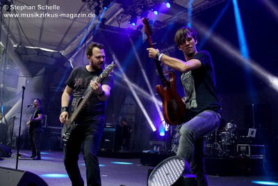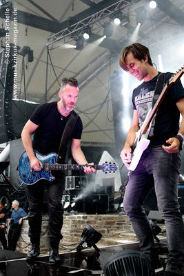 Podest an den Bühnenrand und ließen ihre beiden Gitarren in einer