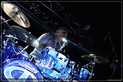 In einer Trommelpause setzt Carl voller Hingabe und mit scheinbar höchster Konzentration seine kleinen tibetischen Zimbeln ein – genau ein Gong und nicht mehr! Einmal gibt Carl dem Publikum einen Takt zum klatschen vor. Als das Publikum so richtig im vorgegebenen Takt klatscht, steigt er mit dem Schlagzeug dazu ein und freut sich wie ein kleines Kind, als er seinen Rhythmus ändert und das Publikum damit aus dem Takt bringt. Zum Abschluss der Zugabe, legt sich Carl noch mal richtig mit einem Drumsolo ins Zeug. Als besonderes Schmankerl legt er dabei einmal einen seiner Sticks auf eins seiner Becken und schlägt diesen mit seinem zweiten Stick.
