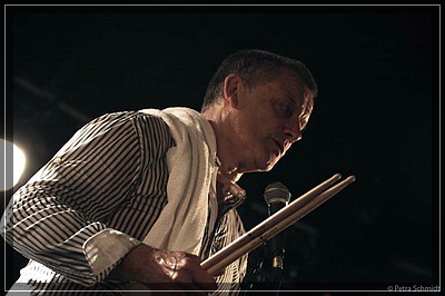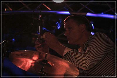 Die Zeit vergeht wie im Flug, wenn man ganz gebannt Carl beim Drummen zusieht – es ist ein reines Vergnügen! Seine beiden Füße stehen keine Sekunde still und unermüdlich traktiert er seine zwei Base-Drums in einem fort und in einem unbeschreibbaren Tempo und dabei spielt er gleichzeitig mit seinen Sticks noch auf dem restlichen Drum, sehr viel auch auf den Toms. Sein Schlagzeug ist ein vergleichsweise »kleines« Drumset mit 2 Hänge-Toms, 2 Floor-Toms, aber zwei Base-Drums.
