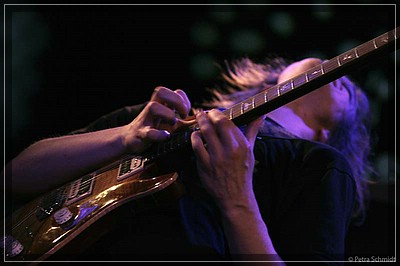 Was auffällt ist der nonverbale Dialog zwischen den Musikern „Ich bin fertig. Wie weit bist du?“, „Dein Einsatz bitte!“. Und damit das Schlagzeug nicht nur im Vordergrund steht, bekommt jeder sein Solo, zuerst Paul Bielatowicz mit seiner Gitarre, und anschließend Simon Fitzpatrick mit seinem Bass.