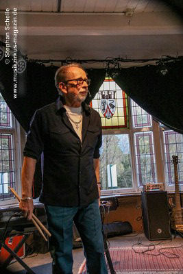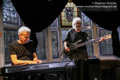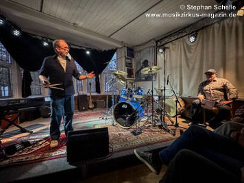 Nach einigen Geschichten holte Curt dann Wolfgang Schmid (Bass) und Chris Weller (Keyboard) auf die Bühne um mit den beiden zu improvisieren. Wie Curt sagte, ist jeder Abend anders, da die Stücke nie gleich sind. Hier zeigte sich aber welch Ausnahmekönner auf der Bühne standen. Sie agierten mit einem blinden Verständnis und boten eine sehr abwechslungsreiche Mischung aus Rock, Soul, Funk und Jazz, wobei auch mal ein The Police-artiger Rhythmus sich aus dem Sound schälte. Wolfgang Schmid spielte dabei nicht nur einen rhythmischen Bass, sondern übernahm zeitweise auch die Leadstimme bzw. die Harmonien. Während einer Improvisation zeigte Curt dann sein ganzes Können während eines längeren Schlagzeugsolos, in dem er nicht nur technisch anspruchsvoll agierte, sondern auch noch sehr harmonische Rhythmusmuster spielte. Er hat den Rhythmus im Blut.