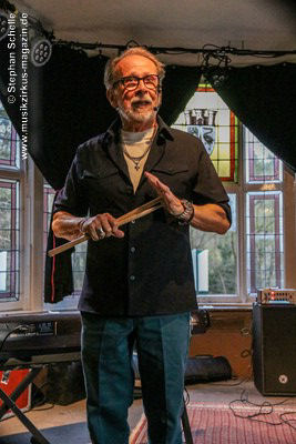 Bevor es richtig losging lobten Curt Cress und Werner Fromm erst einmal die Location sowie das Personal und die Verantwortlichen des Haus Eifgen. Sie seien herzlich empfangen worden und hätten ein sehr positives Umfeld vorgefunden. Wörtlich sagte Cress: „Ihr wisst gar nicht was ihr hier für eine tolle Location und einen tollen Verein habt.“ Und das will was heißen, aus Munde eines Mannes, der schon die ganze Welt gesehen hat. Dann testete Cress das Rhythmusgefühl der Besucher, in dem sie rhythmisch 1x mit dem Fuß und 2x in die Hände klatschen sollten. Dieser Rhythmus sollte ein paar Minuten gehalten werden, während Curt in einem abweichenden Rhythmus Schlagzeug spielte. Es klappte.