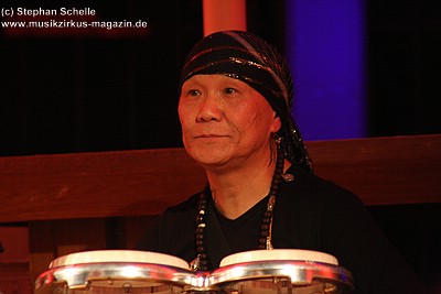 In diesem zweiten Teil kam Nippy Noya dann auch noch zu seinem Perkussionsolo. In diesem Solo stellte er sein ganzes Können unter Beweis, denn was er da so aus den unterschiedlichen Rhythmusgeräten herausholte war einfach nur klasse. Voller Gefühl, Harmonie, akzentuierter Rhythmus und einer unglaublichen Leichtigkeit zaubert er ein stimmungsvolles Rhythmusgebilde, das auch noch sehr melodisch wirkte. Dabei flogen seine Handgelenke in traumwandlerischer Art über seine Gerätschaften. Mit der Zugabe „Rhapsodie für Marcin“, das schon bei der Nennung im Publikum für Begeisterung sorgte, endete dann ein sehr stimmungsvolles und mitreißendes Konzert.