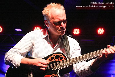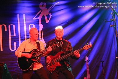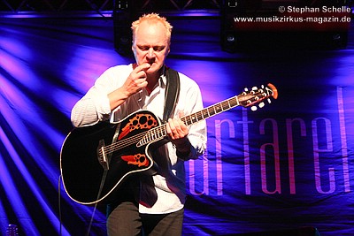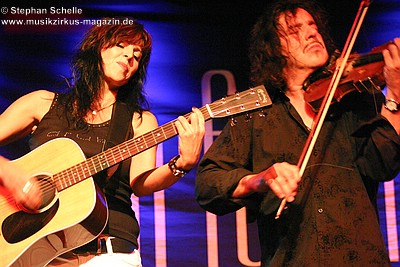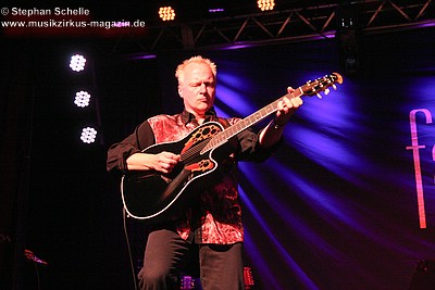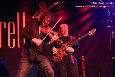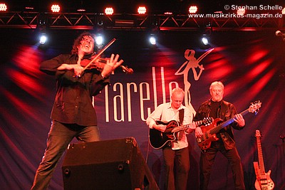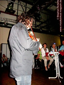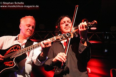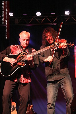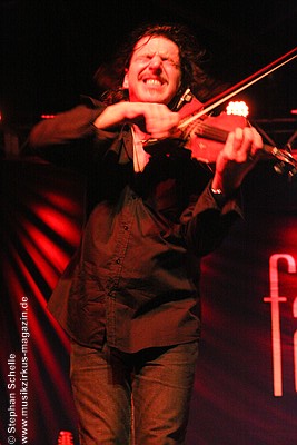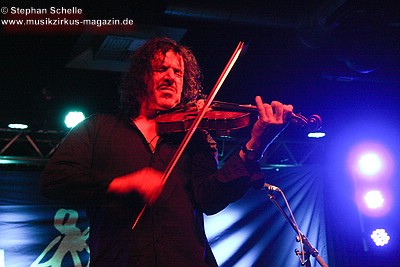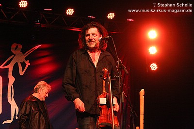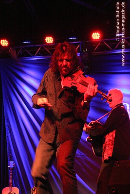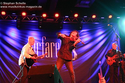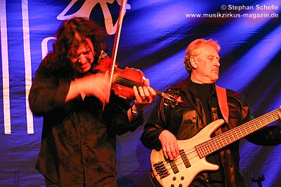 Nach dieser aufwühlenden Nummer war dann mit „Unter dem Flüsterbogen“ eine Ruhepause angesagt. Bei diesem balladesken Stück verließ Mani die Bühne und mischte sich Geige spielend unter das Publikum. Das gab dem Ganzen eine besondere Note. Beim abschließenden „Finale“ zogen sie dann noch mal alle Register und Ulli und Joschi lieferten sich in einem wahren Feuerwerk ein Duell an ihren Saiteninstrumenten. Dabei mischten sie mal eben eine kurze Passage des Manfred Mann-Klassiker’s „Davy’s On The Road Again“ in den Titel. Nach gut zwei Stunden war der offizielle Teil des Konzertes beendet.