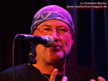 Der Auftritt beginnt fast pünktlich um 20 Uhr, Fish betritt unter dem freundlichen Applaus der mittlerweile sicher 400 Besucher seine Welt und legt sofort los. Ohne Band, dafür mit „Chocolate Frogs“ vom Konzeptalbum „Raingods With Zippos“ eröffnet einen denkwürdigen Abend. Mit einem schelmischen Grinsen bedankt er sich nach dem Song bei Foss Petterson und Frank Usher für die Begleitung, die danach schließlich auch die Bühne betreten. Die drei „F’s“ sind komplett und Fish scheint nicht nur gute Laune zu haben, er ist richtig gut drauf.