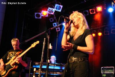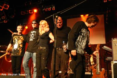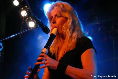 Das Quintett Flamborough Head aus den Niederlanden eröffnete den Samstag mit ihrem Konzert, das erste auf deutschem Boden. Und Margriet Boomsma (Gesang, Flöten, Percussion), Marcel Detrix (Bass), Eddie Mulder (E-Gitarre und Gesang), Koen Roozen (Schlagzeug) und Edo Spannunga (Keyboards) heizten das Publikum mit ihrem melodisch/symphonischen Rock mit 70’er Jahre Einflüssen mächtig ein. Neben einigen Pink Floyd-Einflüssen waren aber auch