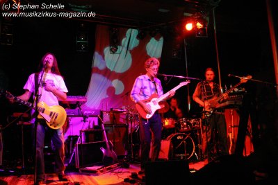 Als visuelle Unterstützung liefen im Hintergrund einige teils recht psychedelische Projektionen ab, die aber aufgrund der kleinen Bühne im Movie nur teilweise zu sehen waren. Diese Animationen, die den grafischen Stil der Alben „The Sum Of No Evil“ und „Flowerpower“ wiedergaben, passten hervorragend zur Musik.