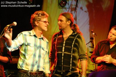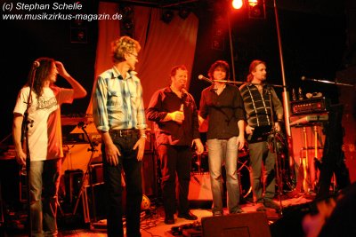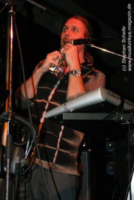 Aber die Flokis brauchen eigentlich keine visuelle Unterstützung, denn es reicht schon völlig aus ihre Musik zu hören und die Leidenschaft, die sie bei Auftritten an den Tag legen, aufzunehmen. Die einzelnen Stücke wurden in sehr schönen, abgewandelten Versionen gespielt, die reichlich Platz für Soli und Improvisationen ließ. So waren in einem Track plötzlich einige Töne der deutschen Nationalhymne auszumachen, die aber nur kurz angedeutet wurde. Dann flochten sie einige so schräg klingenden Passagen in ihre eingängigen Stücke ein, dass es schon wieder genial war.