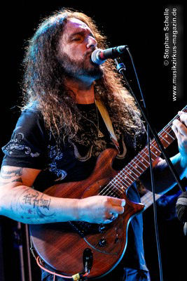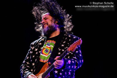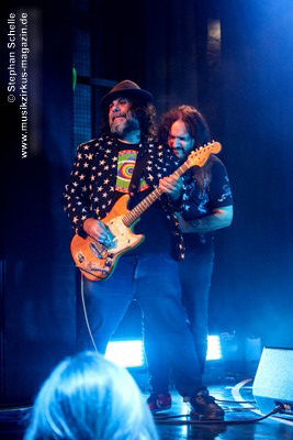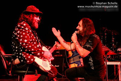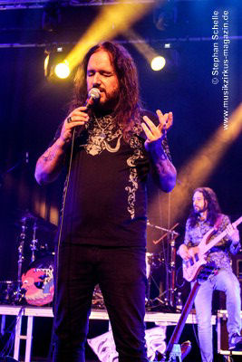 aber egal, denn jetzt ließ er seine Haare fliegen und riss bei den Soli