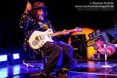 auf der Bühne agierte und neben dem tollen Gitarrenspiel auch für jeden