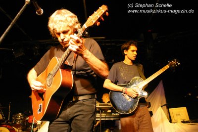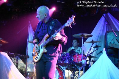 Hervorheben möchte ich aber an dieser Stelle „Könige der Welt“, welches sie in einer faszinierenden Version spielten. Zunächst sorgte Rolf Möller mit seinem Rhythmus der sehr stark an Peter Gabriel’s „Biko“ erinnerte für Gänsehaut, dann entwickelte sich das Stück durch Reggae-artige Passagen zu einem mitreißenden Song. Nie hab ich den Titel so gut gehört. Die neue Version war gegenüber der von Hohenlimburg durch den erheblich erweiterten Anfangspart verändert. Weitere Höhepunkte des Auftritts waren für mich die Versionen von „Ernies Reise“, „Anywhere“ und „Rockpommels Land Finale“ zu dem neben Trockeneis auch der Maraboo zum Einsatz kam sowie „Solar Music“ in der „Sonnentanz“-Version. Zwar mussten sie aufgrund der niedrigen Decke im Saal auf Pyrotechnik verzichten, hatten die Flex, den Sonnengott und Fackelträger trotzdem im Programm. Das sind halt die Elemente, die der Fan erwartet. Vor allem „Solar Music“ glänzte durch neue Passagen und herrliche Soli der einzelnen Musiker, die zu Szenenapplaus führten.