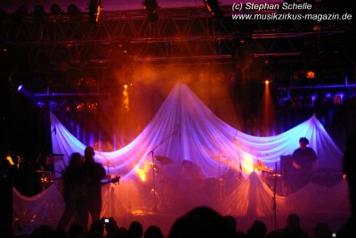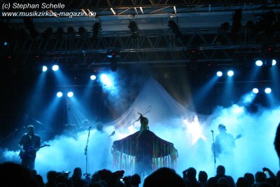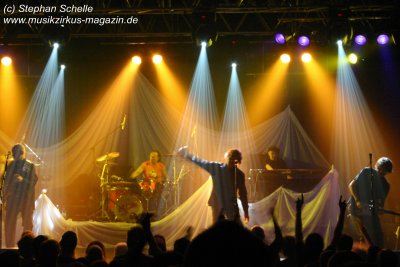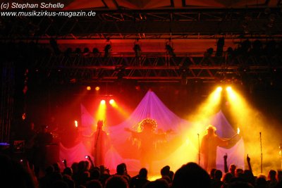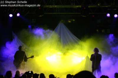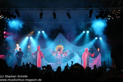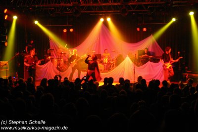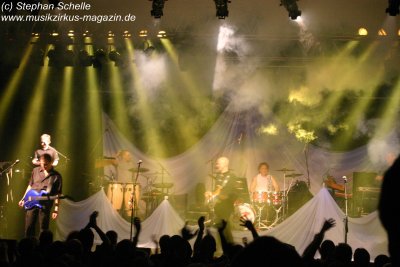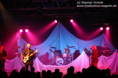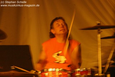 Ganz vorn standen die nochmals verbesserten Showelemente. Das Licht hatte Stefan Danielak jun. noch einmal neu programmiert, was sich wirklich gelohnt hat, denn die Lichteffekte, verbunden mit dem Nebeleinsatz waren atemberaubend und hypnotisierten die Zuschauer. Musikalisch hatten sie auch etwas Hand an einigen Stellen angelegt, denn zum einen klangen die Stücke und die Soli perfekter (nicht steril sondern noch sauberer gespielt), vor allem Tattvas Einlagen waren bisher die besten der Tour, zum anderen hat die Band das Stück „Komm und tanz“ umarrangiert. Das Stück, mit dem sie den zweiten Teil der Konzerte beginnen, klang rockiger und direkter. Das lag vor allem daran, dass die Keyboardpassagen etwas entschlackt wurden und, wie ich finde, der Bass von Milla noch druckvoller und ausgeprägter rüber kam. Auch „Solar Music“ spielten sie an diesem Abend sehr rockig. Ich hatte das Gefühl, als sei vor allem der Dialog der beiden Schlagwerker Rolf Möller und Demian Hache noch druckvoller und lebendiger gewesen.