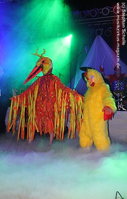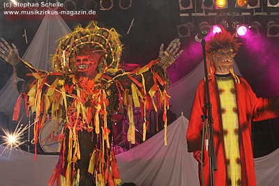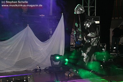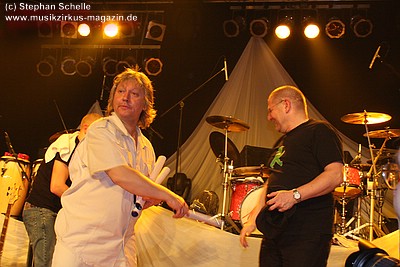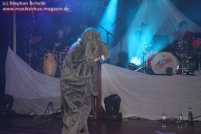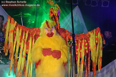 Dann kam als erster Höhepunkt des Abends (eigentlich gab es nur Höhepunkte) die Zusammenfassung von Rockpommel’s Land, die immer wieder für Begeisterung sorgt. Der Maraboo, der bei der Show nicht fehlen darf, hatte sich dieses Mal (wie schon zwei Wochen zuvor beim Gig in Gießen) sein Kind, nämlich ein Küken, mitgebracht. Eine wirklich schöne, schräge Nummer.