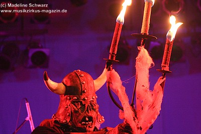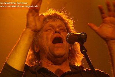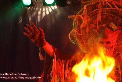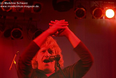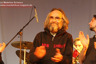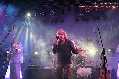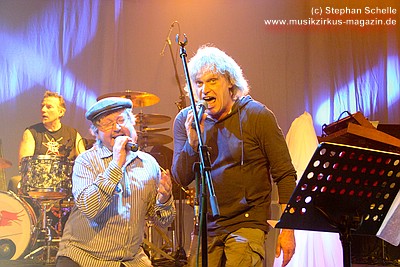 Die Konfetti-Krise blieb aber die einzige augenfällige Panne bei diesem Konzert, das dem Bandjubiläum würdig ein Denkmal setzte. Man merkte der Band an, dass ihr gerade dieser Gig eine Herzensangelegenheit war. Dies nimmt auch nicht wunder: der vor einigen Jahren unerwartet verstorbene Keyboarder Volker „Myst“ Kahrs, der der Gruppe in den 70er Jahren wichtige Impulse gab und für die Story des beliebten Rockmärchens und weite Teile der Kompositionen verantwortlich zeichnete, stammte aus Osterholz. Mit bewegten Worten erinnerte Sänger Willi Wildschwein an den alten Weggefährten und daran, dass dieser wohl die Landschaft dieser Gegend vor Augen hatte, als er die Geschichte von Klein Ernies Reise nach „Rockpommel’s Land“ ersann. Somit ging das Konzeptwerk bei diesem Auftritt der Gruppe zurück an seine Wurzeln, was allein schon für eine gewisse Magie sorgte, die im Saal greifbar schien.