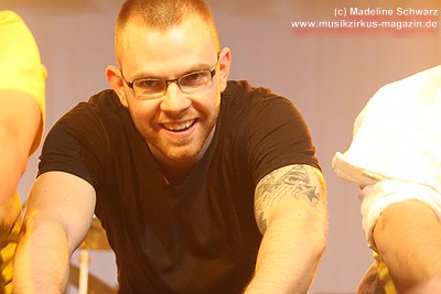 Nach dem Auftritt erinnerten sich die Musiker mit einigem Schmunzeln an diesen Augenblick - nahezu alle Zuschauer in den ersten Reihen guckten ungläubig gen Himmel.