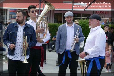 versammelt sich das Guca-Gebläse und eine vielköpfige Rocktruppe. Die Bühne