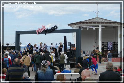 ist wieder einmal mittig die Pink-Piano-Bühne aufgebaut, diesmal ohne Dach,