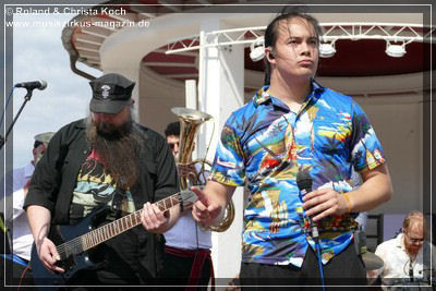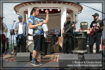 Hawaiihemd zappelt in dem Klanggewitter über die Bühne, gibt echt alles,