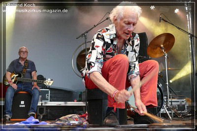 Schlagzeug-Solo auf Topfdeckeln; er hat trotz seines hohen Alters seinen