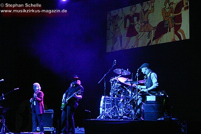Obwohl ich das Progressiverock-Meisterwerk „Thick As A Brick“ von Jethro Tull aus den 70’ern liebe und auch die neue Version faszinierend finde, hatte für mich gerade die Kombination aus Progressive Rock und dem folkigen Rock, den Tull über viele Jahre spielten, einen besonderen Reiz. Wie vor dem Konzert in Erfahrung zu bringen war, befand sich Anderson auf der „Thick As A Brick“-Tour, als Schlagzeuger Scott Hammond sich einer Knieoperation unterziehen musste (für einen Schlagzeuger natürlich ein worst-case), die ihn für einige Zeit außer Kraft setzte. Diesem Umstand war es geschuldet dass die Band mit James Anderson, dem Sohn von Ian Anderson, als Ersatzdrummer weiterspielen musste. James kannte den Großteil der Tull-Stücke, allerdings nicht den kompletten „Thick As A Brick“-Set und so stellte Ian das Programm kurzerhand – wie oben angekündigt – um.