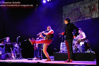 In Dortmund konnte der genesene Scott Hammond aber wieder hinter seiner „Schießbude“ Platz nehmen und so präsentierte Ian Anderson mit der Bandbesetzung: Ian Anderson (Gesang, Querflöte, Akustik-Gitarre), John O’Hara (Keyboards, Akkordeon), David Goodier (Bass), Scott Hammond (Schlagzeug), Ryan O’Donnell (Gesang, Tanz, Schauspiel) und dem aus Deutschland stammenden Gitarristen Florian Opahle beide Parts von „Thick As A Brick“. Die Show war mit Ausnahme der Zugabe damit identisch mit der aus Hamm 2012, daher verweise ich auf meinen ausführlichen Bericht, den ihr hier (Hamm 2012) lesen könnt.
