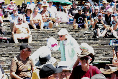 Besucher, die zu diesem frühen Zeitpunkt schon auf dem Festivalgelände
