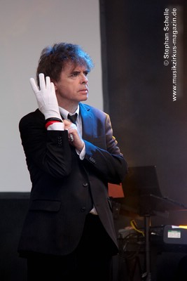 von Animationen auf der rückwärtigen Leinwand, die aber aufgrund des
