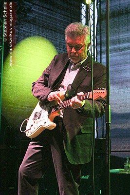 Manfred Mann und seine Band zündeten ein Feuerwerk ihrer besten Stücke der letzten 40 Jahre ab und sorgten für ganz großes Kino auf dem Schlossberg. In der herrlichen Kulisse hatten sich zahlreiche Musikfreunde eingefunden. Die Musiker waren ausgesprochen gut gelaunt und das übertrug sich auch auf das Publikum und so entwickelte sich eine fröhliche, ausgelassene Stimmung in der herrlichen Kulisse der Schlossruine. Schon mit den ersten Tönen von „Spirits In The Sky“, mit denen Manfred & Co ihren Set begannen war die Stimmung grandios. Ab diesem frühen Zeitpunkt hatte die Band das Publikum fest im Griff und ließ es nicht mehr los.