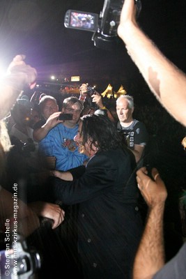 Absperrung überwand und sich mitten ins Publikum begab, während er