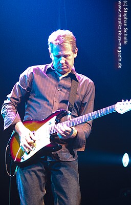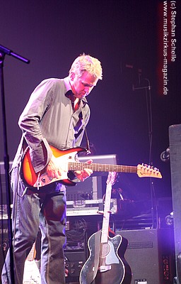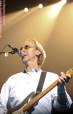 Dann kamen zwei Stücke von Mike’s Stammband Genesis. Zunächst bot die Band eine Version von „Follow You, Follow Me“, bei der Tim stimmlich durchaus an Phil Collins heranreichte. Es folgte mit „I Can’t Dance“ ein weiterer Genesis-Hit, bei dem Roachford und Tim sich auf der Bühne bewegten wie seinerzeit Rutherford, Banks und Collins im Musikvideo. Dass diese Stücke nicht unbedingt in großen Arenen und mit einer überdimensionierten Show funktionieren wurde beim Auftritt in Duisburg besonders deutlich. Und wann hat man auch schon mal die Möglichkeit Mike Rutherford aus wenigen Metern Entfernung sehen zu können?
