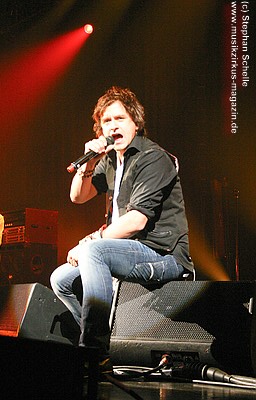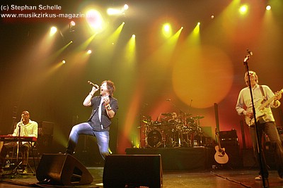 Für das mitreißende „The Living Years“ gab es erste, noch zaghafte Standing Ovations. Bei „Over My Shoulder” griffen Mike und Anthony zur Akustikgitarre und Keyboarder Luke griff zum Bass. Luke übernahm in diesem Stück auch den gepfiffenen Part. Dieses Stück ließ die Stimmung auf den Höhepunkt steigen, denn das Publikum sang den Refrain lauthals mit. Und beim abschließenden „All I Need Is A Miracle” gab es dann kein Halten mehr, denn es hielt keinen Besucher mehr auf dem Sitz. Obwohl der Saal bestuhlt war, tanzte das Publikum nun förmlich auf den Sitzen. Es war Party pur angesagt. Und wieder singt das Publikum aus hunderten von Kehlen auf Tim’s Zeichen hin den Text mit. Das sorgte für Gänsehaut. Unter tosendem Applaus wurde die Band nach gut 80 Minuten von der Bühne verabschiedet.