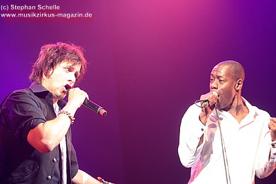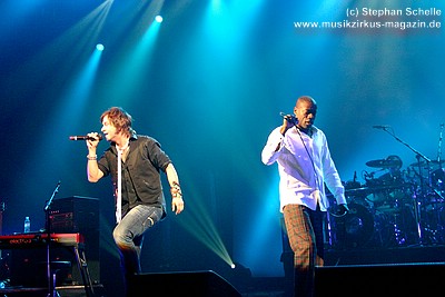 Bei „Another Cup Of Coffee” stieg zum ersten Mal, wenn auch noch etwas gebremst, die Stimmung im Saal, denn das Publikum sorgte das erste Mal mit rhythmischem Klatschen für Stimmung. Und bei den älteren Hits wurden Paul Carrack und Paul Young nicht vermisst, denn die beiden neuen hinterm Mikro waren perfekt aufeinander eingespielt und wechselten sich wie zum Beispiel in „Nobody Knows“, bei dem Roachford die Strophe und Tim den Refrain übernahm, sehr gut ab. Das klang für mich nicht nach einem Versuch die Originale zu imitieren, sondern hatte eine ganz eigene Qualität, die den Songs gut zu Gesicht stand.