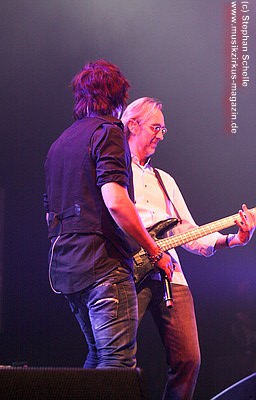 Und dann legten die sechs Musiker einen Auftritt hin, der musikalisch und klanglich keine Wünsche übrig ließ. Mit Ausnahme des Albums „M6” gab es Songs aller bisherigen Mike & The Mechanics-Alben, von denen besonders die bekannten Hits richtig abgefeiert wurden. Die Mixtur aus Rock und intelligentem Pop, angereichert mit Soul und Funk funktionierte hervorragend. Dazu ergänzten sich die beiden Sänger Andrew Roachford (er ist vor allem durch sein Projekt Roachford bekannt) und Tim Howar (kanadischer Sänger, der hauptsächlich im Musicalbereich tätig war) perfekt. Sie boten entweder herrliche Duette oder sorgten mit ihrem Satzgesang für sehr schöne Harmonien.