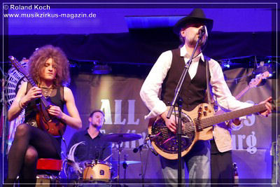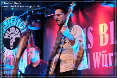 Blues-Mucke. Der dritte im Bunde ist Mitgründer Michi Lang am Bass, er