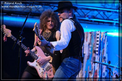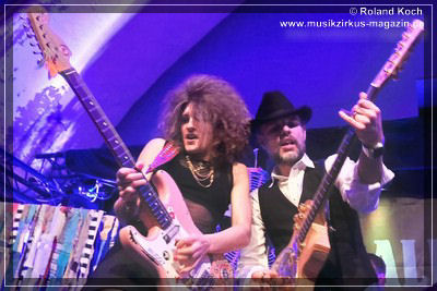 des Gitarren-Duo. Überhaupt ist die gesamte Band permanent in Bewegung,