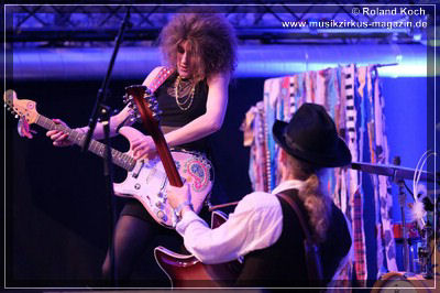 Fabian singt, Ina wechselt ständig von ihrer bonbonrosa Gitarre zur
