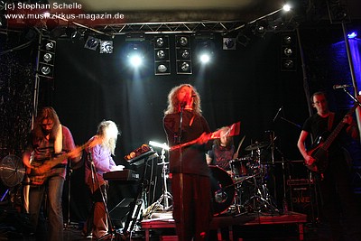 Alex, der im Gegensatz zum 2007’er Gig nun lange Haare hat, ging auf der kleinen Bühne so engagiert zur Sache, dass er unter anderem mal kurz das Mikro seines Schlagzeugers umriss. Auf der Bühne erinnert er durch den Einsatz seiner Querflöte immer wieder ein wenig an einen jungen Ian Anderson. Keyboarder Tarmo war ganz in seinem Tastenspiel versunken. Er zauberte aus seinen Gerätschaften sehr schöne Passagen, die mal unterstützend, dann wieder mit klassisch anmutenden Soli glänzten. Und Gitarrist Jaakko war ebenfalls ganz seinem Spiel verfallen, das er mit tollen Riffs und Soli versehen hatte. Schlagzeuger Ville zeigte, dass er es versteht auf eine ganz eigene, sehr faszinierende Art seine Trommelfelle zu bearbeiten. Nur Bassist Janne wirkte bei dem Gig wie der ruhende Fels in der Brandung. Er absolvierte den Gig souverän, aber sachlich nüchterner, als die anderen vier.
