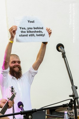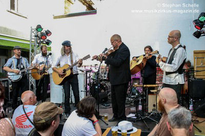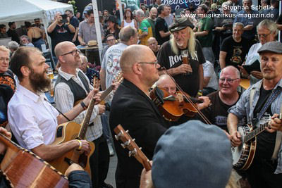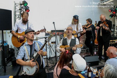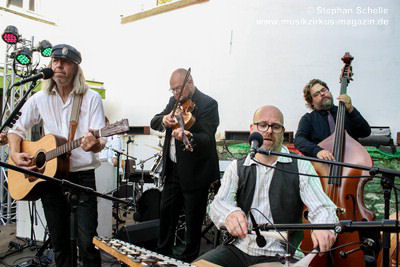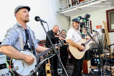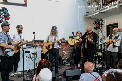 Pünk Flöyd haben Stücke des kompletten Pink Floyd-Repertoires drauf und spielten ein Set mit ihren Lieblingsstücken. Die Band präsentierte außergewöhnliche Versionen mit akustischen Instrumenten, was ihnen einen folkigen Anstrich verpasste. Gestartet wurde mit „Goodbye Cruel World“. Aber erst mit dem zweiten Stück „Welcome To The Machine“ wurde den Besuchern klar, was hier abging und so mancher verdrehte bei den ersten Tönen die Augen. Es dauerte aber nicht lange bis sich eine gewisse Faszination im Publikum für diese außergewöhnlichen Interpretationen der Stücke entfaltete.