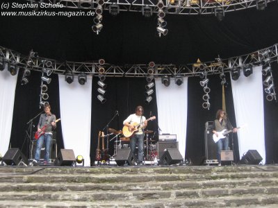 Ali Ferguson (Gitarre), Ashley Macmillan (Schlagzeug) und Lawrie Macmillan