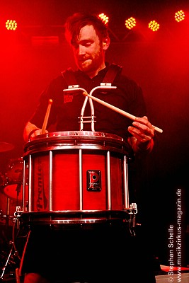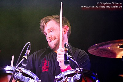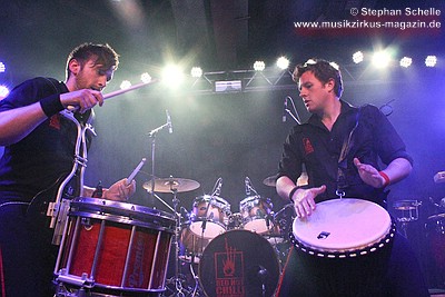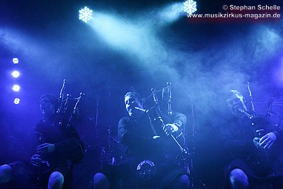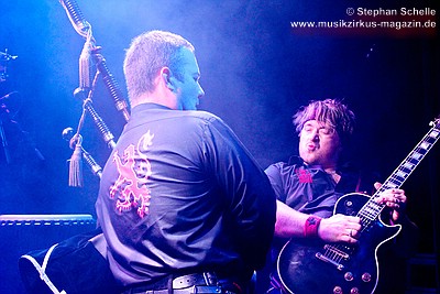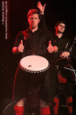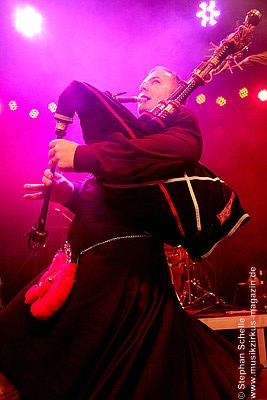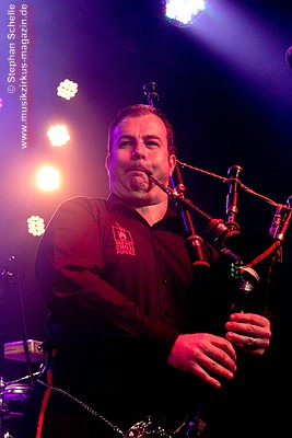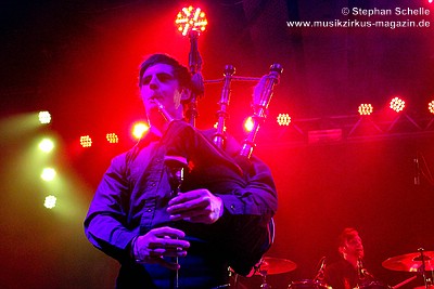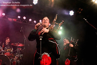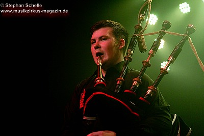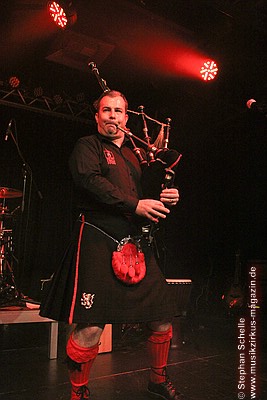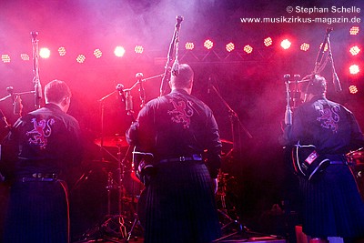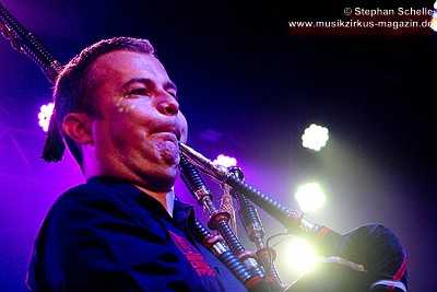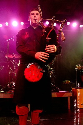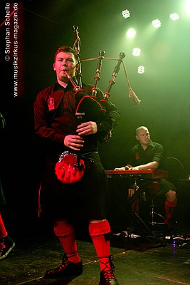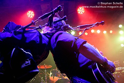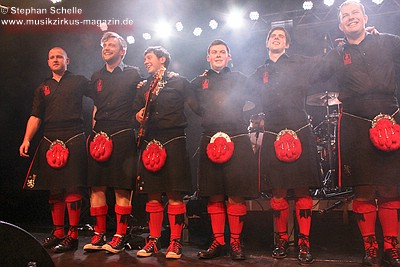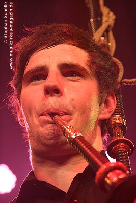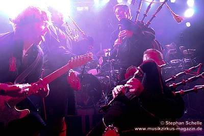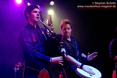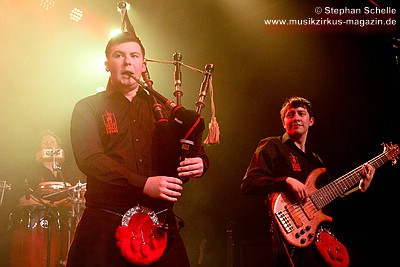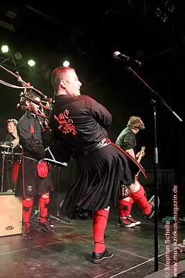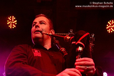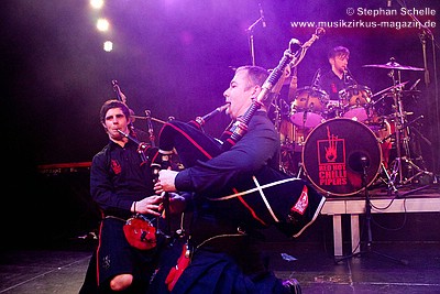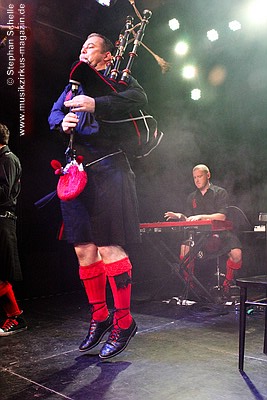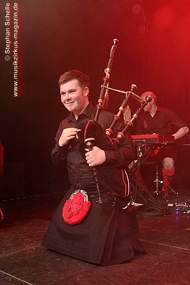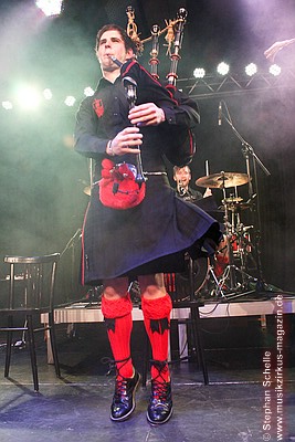 Zwischen den einzelnen Songs gab es nicht nur Ansprachen in englisch, nein die Musiker versuchten auch einige Ansagen auf deutsch zu machen. Und das machten sie mit einer gehörigen Portion Humor. Sie nahmen sich nicht ernst und das übertrug sich auch auf die gute Stimmung im Saal. Und das die Stimmung nicht nur vor der Bühne grandios war, das merkte man den Jungs auch auf der Bühne an, denn sie legten eine unglaubliche Spielfreude an den Tag. Während des Konzertes waren es vor allem die drei Dudelsackspieler, die durch eine rhythmische Performance ein tolles Bild abgaben. Da wurde dann auch schon mal unter lautem Jubel mit den Hüften geschwungen und die Kilts durch die Gegend geschleudert.