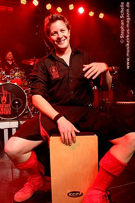 Dann kam nach kurzem Abgang von der Bühne der Zugabenteil, bei dem die Band ein „We Will Rock You“ die Fußballhymne von Queen mit dem Survivor-Hit „Eye Of The Tiger“ mischte. Bei diesem Stück mussten die Zuschauer natürlich rhythmisch in die Hände klatschen. Nach dem Traditional „Auld Lang Syne“ war dann endgültig Schluss. Band und Zuschauer ließen ein Schweiß treibendes und einfach nur Spaß bringendes Konzert hinter sich. Sehr bemerkenswert ist auch, dass die komplette Band schon wenige Momente nach dem Konzert geschlossen ins Publikum kam um alle Wünsche, seien es Autogramme, Fragen oder Fotos zu erfüllen. Ein tolles, beeindruckendes Konzert, das man gesehen haben sollte.