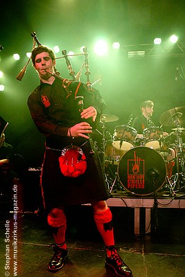 Natürlich weckt eine Band, die sich namentlich in Anlehnung an eine andere große Rockband orientiert ein großes Interesse. So ist das auch mit den Red Hot Chilli Pipers. Die achtköpfige Band kommt aus Schottland und hat neben typischen Rockinstrumenten auch das schottische Nationalinstrument, den Dudelsack mit im LineUp. Und genau dieser ist es, der den Sound der Schotten so extravagant und mitreißend macht.